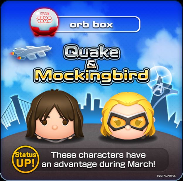 Quake and Mockingbird were added to the Orb box and have increased drop rates and +5 Luck until the end of the day (Pacific Time) March 19th. They also have a +500 bonus to their stats until the end of March.